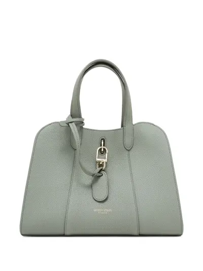 green leather two top handles gold-tone hardware internal zip-fastening pocket internal slip pocket lobster-clasp fastening logo stamp