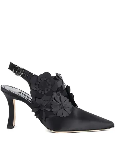 black floral detailing pointed toe slingback strap buckle fastening