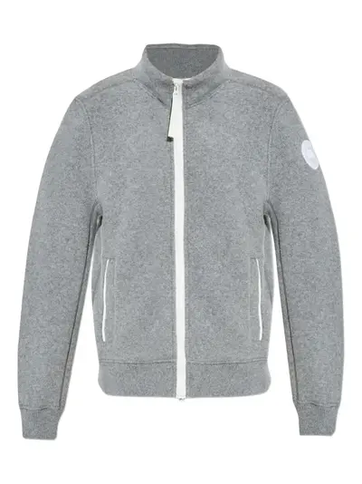 grey zip fastening round logo patch high neck welt pockets ribbed hem