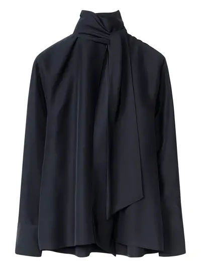 navy blue tie detail long sleeves buttoned cuffs high neck
