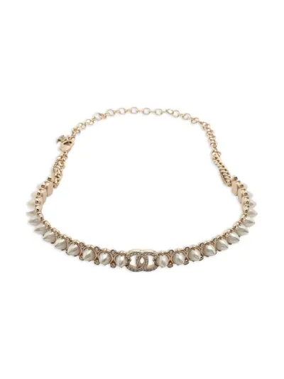 gold plated body with strass and pearl embellishments lobster clasp closure white Serial Number: A22 Inclusions: box. Condition: EXCELLENT. This previously owned item is in near-perfect condition with no signs of damage or use. Due to the exclusivity of this item and its limited availability, processing and delivery might take longer than usual. Please refer to the photos on this product page for a detailed view of the item, including any damages declared.