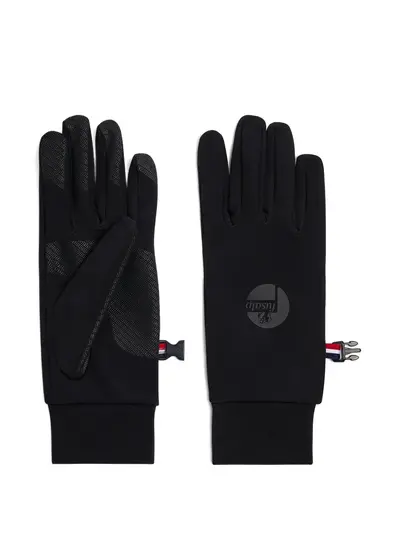 black gripping palms touch-screen compatible finger panels logo detail buckle detail jersey texture
