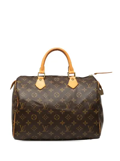 monogram canvas body with vachetta leather trim rolled vachetta leather handles top zip closure interior pocket brown Serial Number: AA0034 Inclusions: padlock, dust bag. Condition: GOOD. This previously owned and used item is in good condition with minimal signs of use. This may include fading of material or plating and scratches. Declared Damages: Practical Attachment Feature(s) Moderate Rust/Tarnish. Please refer to the photos on this product page for a detailed view of the item, including any damages declared.