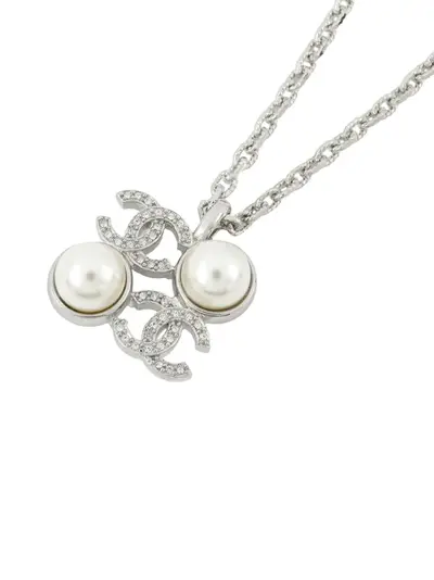 silver-tone chain pendant with faux pearl and rhinestone details lobster clasp closure silver Serial Number: I25S Inclusions: box. Condition: EXCELLENT. This previously owned item is in near-perfect condition with no signs of damage or use. Due to the exclusivity of this item and its limited availability, processing and delivery might take longer than usual. Please refer to the photos on this product page for a detailed view of the item, including any damages declared.