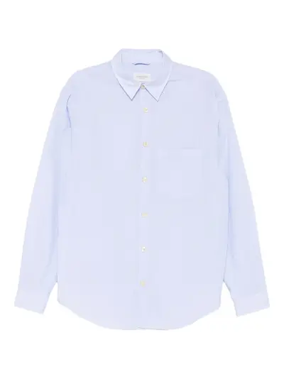 light blue front button fastening chest patch pocket long sleeves buttoned cuffs classic collar