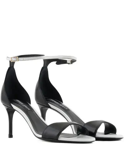 black two-tone design leather buckled ankle strap open toe stiletto heel