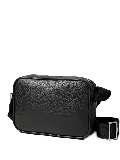 black adjustable strap zip fastening silver-tone hardware grained texture rectangular shape