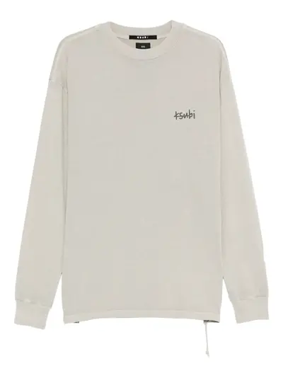 grey cotton crew neck long sleeves logo detail ribbed cuffs