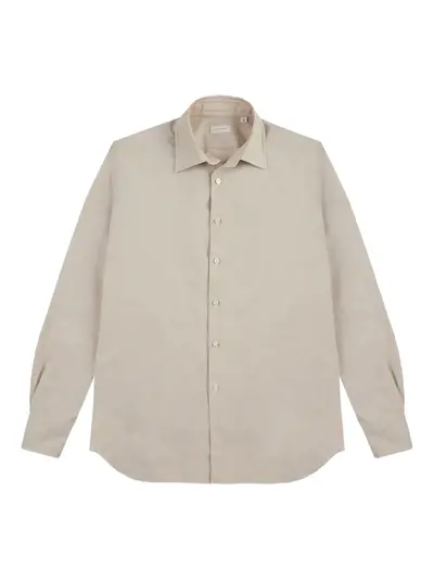 light walnut beige button closure long sleeves buttoned cuffs classic collar