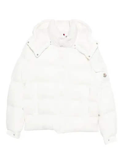 white quilted front press-stud and zip fastening detachable hood chest pocket logo patch