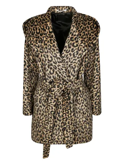 black and beige animal print hood self-tie belt front pockets long sleeves