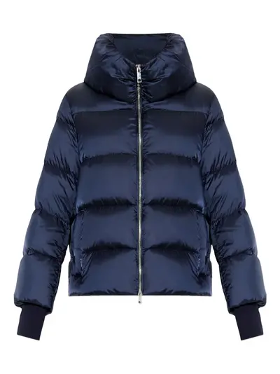 navy blue zip fastening high neck ribbed cuffs puffer design