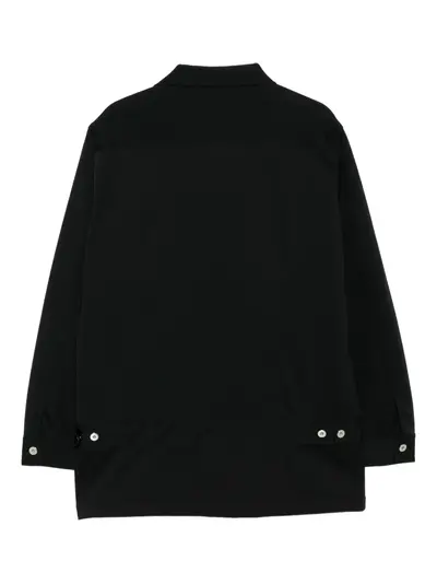 black front button fastening two chest flap pockets buttoned-cuff sleeves