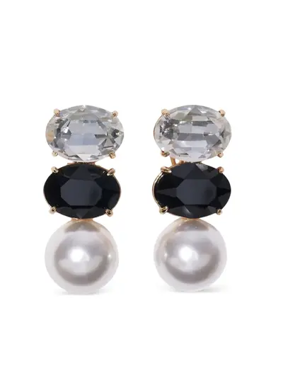 black glass embellishment gold-tone hardware oval stones clip-on fastening Normal everyday use and external agents may reduce the lustre of gemstones and gold surfaces. To maintain, use specific, non-abrasive products specially meant for cleaning jewellery.