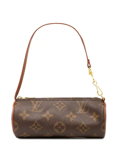 monogram canvas body flat leather strap top zip closure brown This item has no inclusions. Condition: GOOD. This previously owned and used item is in good condition with minimal signs of use. This may include fading of material or plating and scratches. Please refer to the photos on this product page for a detailed view of the item, including any damages declared.