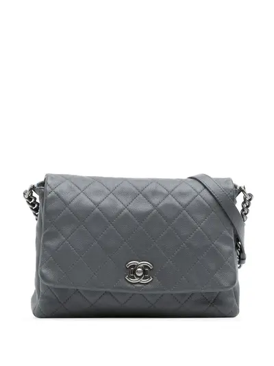 quilted leather body chain link strap with leather shoulder guard front flap closure magnetic snap button closure interior zip and slip pockets gray Serial Number: 21033908 This item has no inclusions. Condition: EXCELLENT. This previously owned item is in near-perfect condition with no signs of damage or use. Please refer to the photos on this product page for a detailed view of the item, including any damages declared.