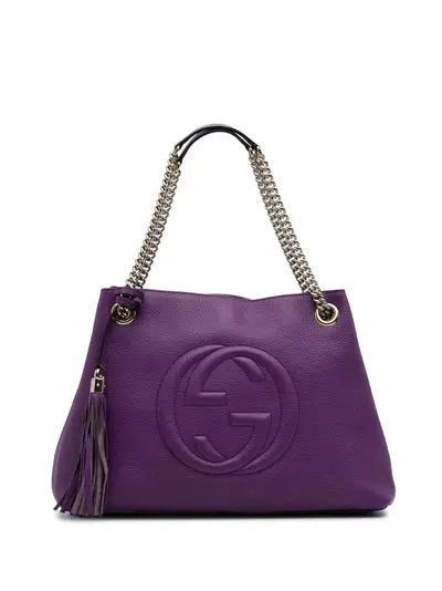 leather body chain link straps with leather guard tassel detail open top with hook closure interior zip and slip pockets purple Serial Number: 308982 001998 Inclusions: charm. Condition: GOOD. This previously owned and used item is in good condition with minimal signs of use. This may include fading of material or plating and scratches. Please refer to the photos on this product page for a detailed view of the item, including any damages declared.