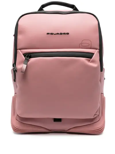 pink top handle zip fastening front zip pocket adjustable shoulder straps logo lettering