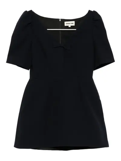 dark blue rear zip fastening bow detailing short sleeves V-neck