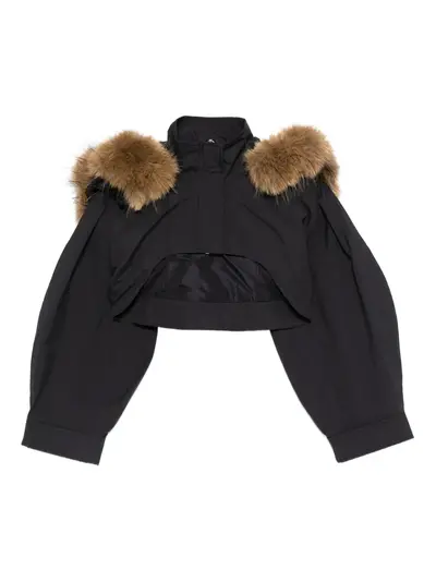 black fur trim long sleeves cropped length