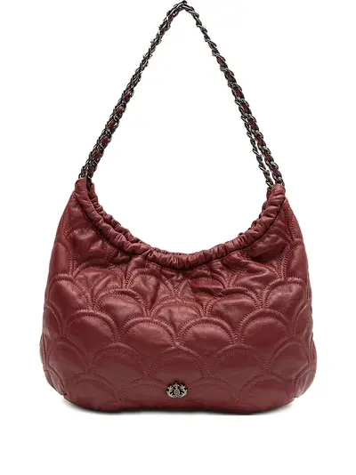 red leather quilted design chain strap gathered detailing top zip fastening logo detail