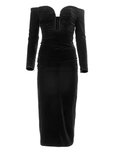 black velvet u-neck long sleeves rear slit