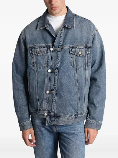 blue asymmetric button fastening chest flap pockets point collar long sleeves buttoned cuffs