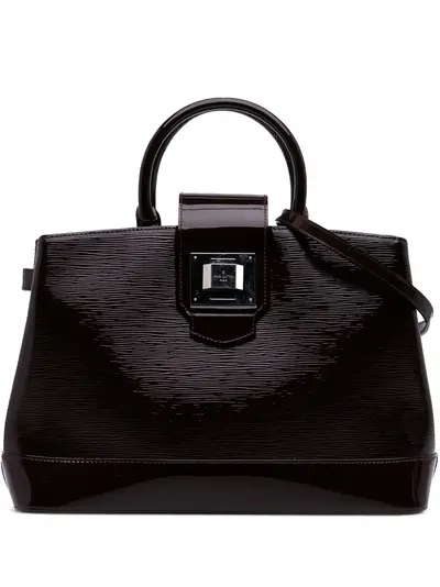 Epi leather body rolled handles detachable flat strap open top with a flat strap and twist lock closure interior zip and slip pockets purple Serial Number: TR4171 Inclusions: shoulder strap. Condition: GOOD. This previously owned and used item is in good condition with minimal signs of use. This may include fading of material or plating and scratches. Please refer to the photos on this product page for a detailed view of the item, including any damages declared.