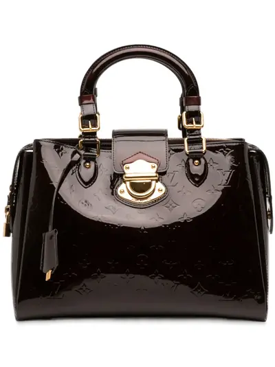 monogram vernis leather body rolled leather handles front flap strap with push lock closure top zip closure interior open pockets purple Inclusions: dust bag, charm, padlock, key. Condition: GOOD. This previously owned and used item is in good condition with minimal signs of use. This may include fading of material or plating and scratches. Declared Damages: Exterior Side Feature(s) Minor Splitting. Please refer to the photos on this product page for a detailed view of the item, including any damages declared.