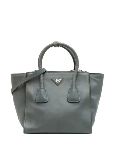 leather body rolled leather handles detachable flat leather shoulder strap open top with magnetic snap closure dual zip compartments interior zip and slip pockets gray Inclusions: shoulder strap. Condition: GOOD. This previously owned and used item is in good condition with minimal signs of use. This may include fading of material or plating and scratches. Please refer to the photos on this product page for a detailed view of the item, including any damages declared.