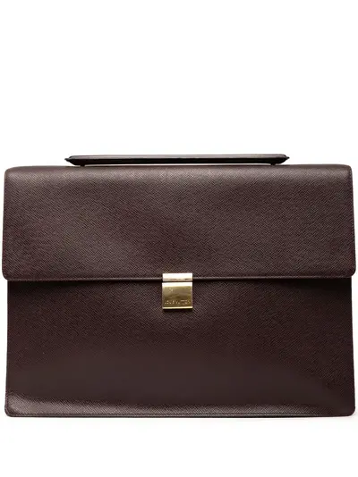 taiga leather body exterior back open pocket rolled leather handle front flap with push lock closure interior open pockets brown Serial Number: MB0041 This item has no inclusions. Condition: GOOD. This previously owned and used item is in good condition with minimal signs of use. This may include fading of material or plating and scratches. Declared Damages: Exterior Top Feature(s) Moderate Cut Stitching. Please refer to the photos on this product page for a detailed view of the item, including any damages declared.
