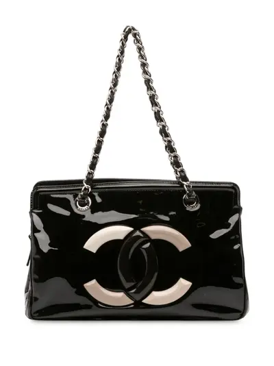 patent leather body silver-tone leather-woven chain straps open top interior zip and slip pockets black Serial Number: 13139853 This item has no inclusions. Condition: GOOD. This previously owned and used item is in good condition with minimal signs of use. This may include fading of material or plating and scratches. Declared Damages: Exterior Side Feature(s) Minor Loose Stitching. Please refer to the photos on this product page for a detailed view of the item, including any damages declared.