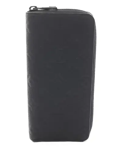 2021s black leather monogram pattern zip closure internal slip pocket card slots