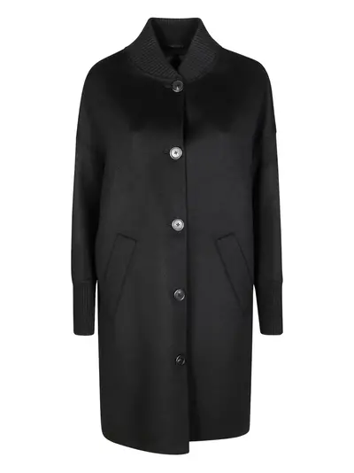 black ribbed-cuffs buttons-fastening side welt pockets buttoned sleeves high neck