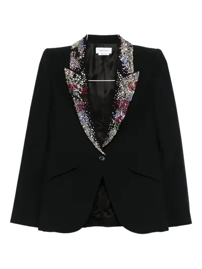 black embellished collar single-breasted front button fastening notched lapels flap pockets