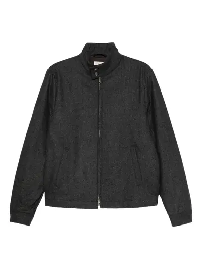 black herringbone weave front zip fastening stand-up collar two front pockets buttoned cuffs