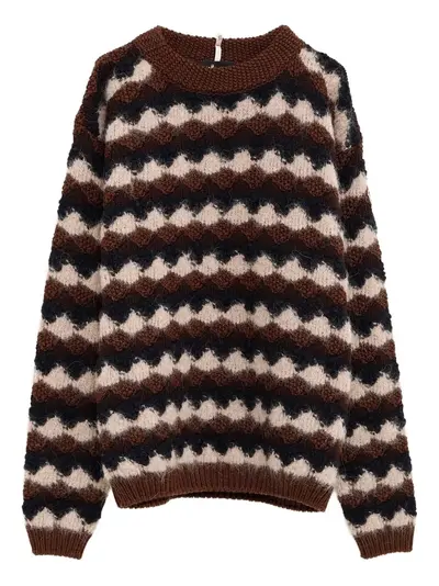 brown textured knit round neck long sleeves ribbed hem and cuffs