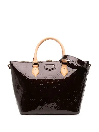 vernis leather body rolled vachetta leather handles detachable vernis leather strap top zip closure interior slip pockets purple Serial Number: DR3164 Inclusions: dust bag, shoulder strap. Condition: GOOD. This previously owned and used item is in good condition with minimal signs of use. This may include fading of material or plating and scratches. Please refer to the photos on this product page for a detailed view of the item, including any damages declared.