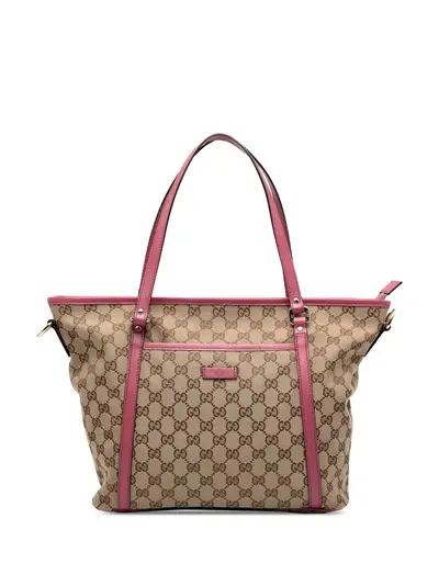 canvas body with leather trim flat leather straps top zip closure exterior slip pockets interior zip and slip pockets brown Serial Number: 388929 525040 This item has no inclusions. Condition: EXCELLENT. This previously owned item is in near-perfect condition with no signs of damage or use. Please refer to the photos on this product page for a detailed view of the item, including any damages declared.