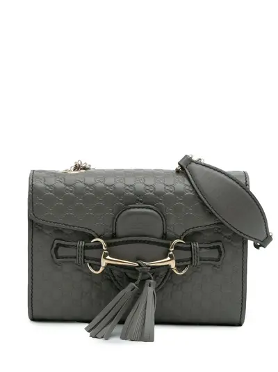 embossed leather body curb chain strap front flap with a slip through closure tassel detail interior slip pocket gray Serial Number: 449636 493075 Inclusions: dust bag. Condition: GOOD. This previously owned and used item is in good condition with minimal signs of use. This may include fading of material or plating and scratches. Please refer to the photos on this product page for a detailed view of the item, including any damages declared.