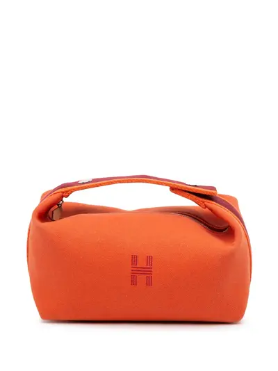 canvas body flat handle top zip closure interior slip pockets orange This item has no inclusions. Condition: GOOD. This previously owned and used item is in good condition with minimal signs of use. This may include fading of material or plating and scratches. Declared Damages: Exterior Side Feature(s) Minor Loose Stitching. Please refer to the photos on this product page for a detailed view of the item, including any damages declared.