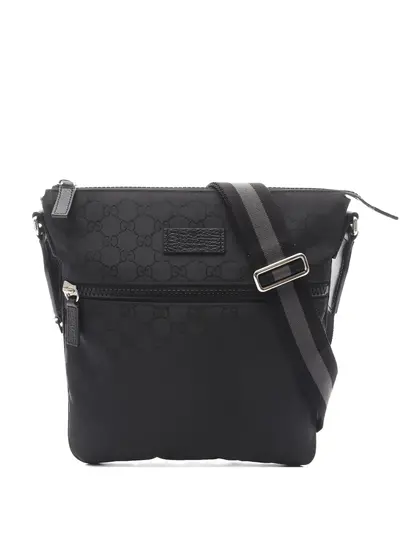 2010s black GG pattern leather trim zip top fastening internal zip pocket adjustable shoulder strap Condition: GOOD. This previously owned and used item is in good condition with minimal signs of use. This may include fading of material or plating and scratches.