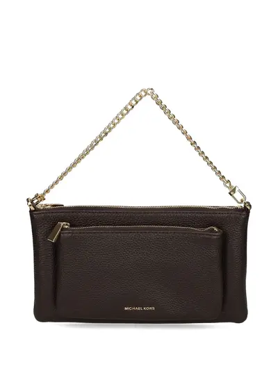brown pebbled leather zip fastening gold-tone chain strap external slip pocket