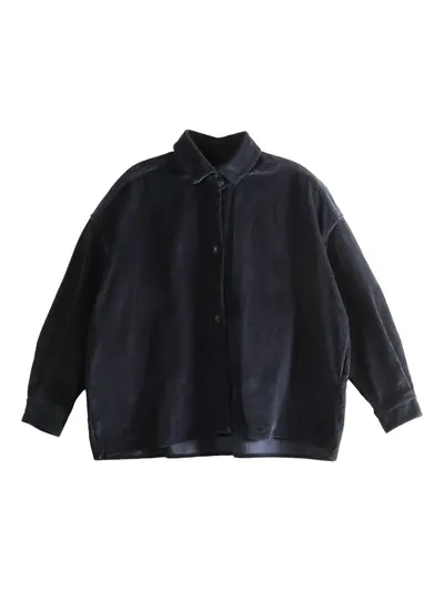 navy blue corduroy texture front button fastening long sleeves buttoned cuffs