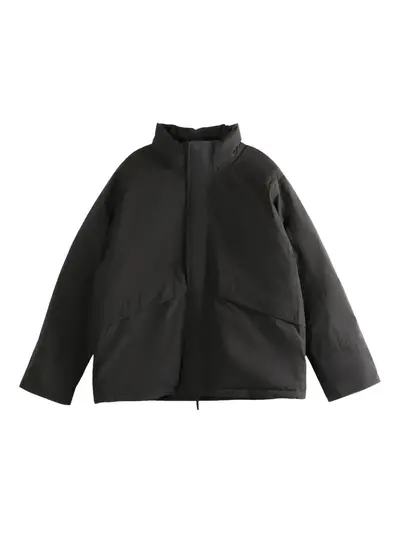 black funnel neck side diagonal pockets long sleeves concealed zip fastening straight hem