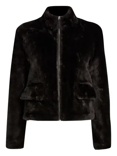 black shearling design zip fastening two front flap pockets high neck long sleeves straight hem