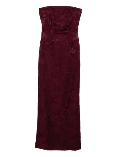 dark purple concealed rear hook and zip fastening all-over floral embroidery boned bodice rear slit