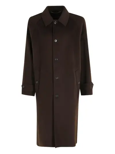 brown button fastening long sleeves side pockets classic collar