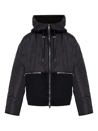 black quilted pattern hood neck zip fastening long sleeves ribbed hem