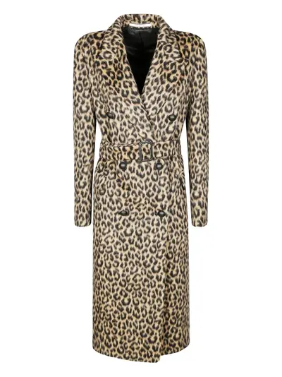 beige and black animal print double-breasted belt button fastening notched lapels